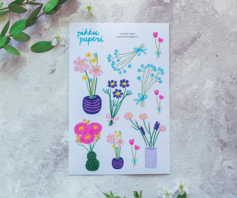 Pikku paperi -merkin paperinen Kukkakimput tarra-arkki.